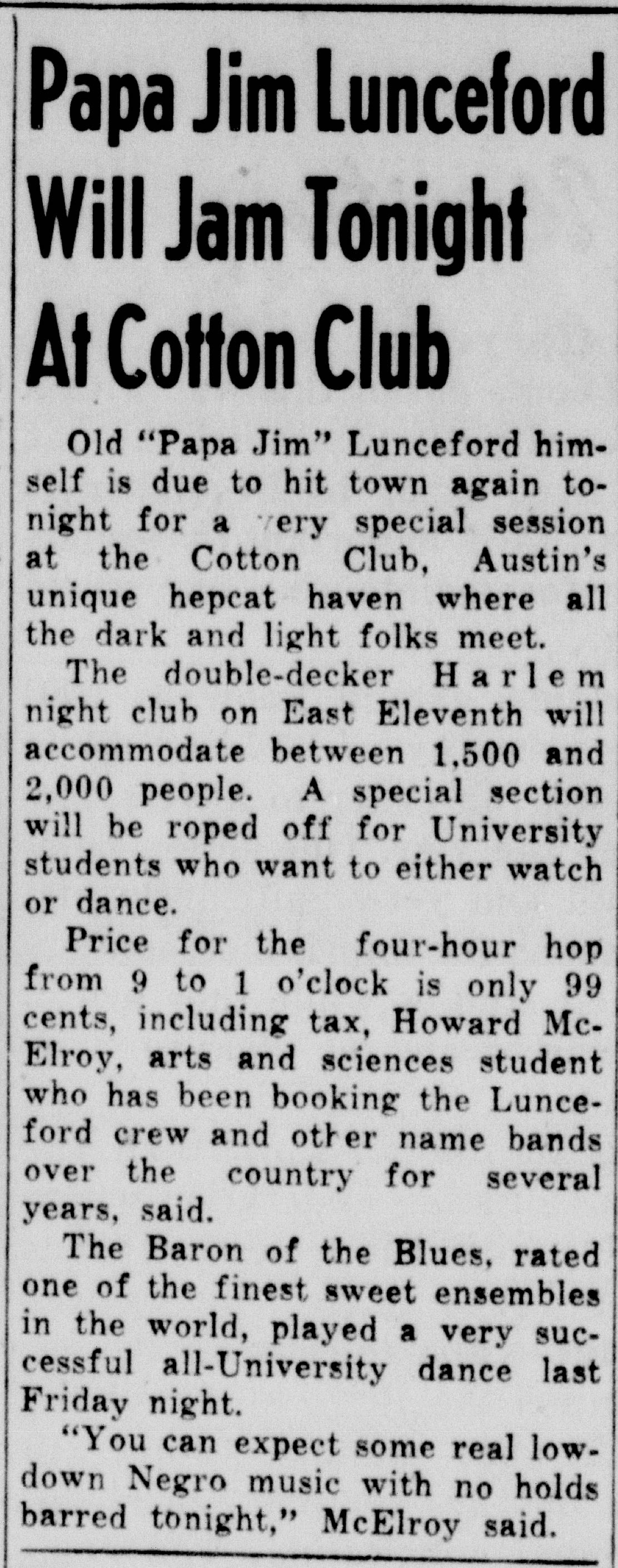 “East Austin Centers of Swing: The Royal Auditorium and the Cotton Club, 817 E. 11th” from Athens on the Colorado: The Dominance of the Universities, 1929-1946