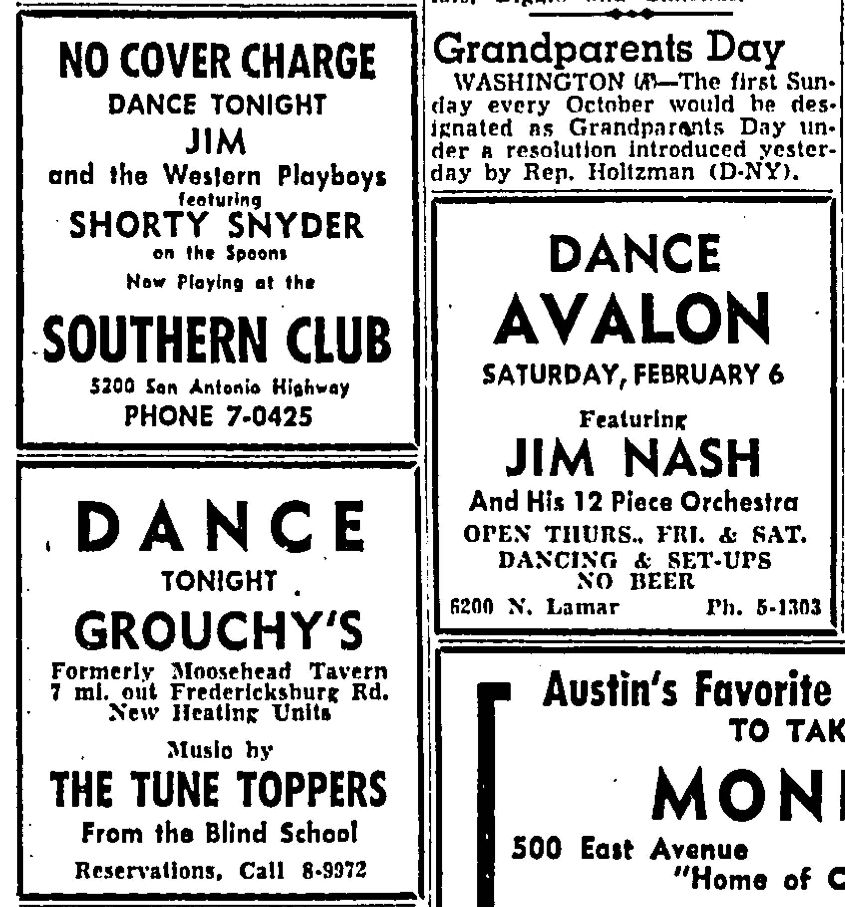 - “Varsity Inn Commences Tropical Night,” Austin Statesman, Nov 11, 1960. ⏎