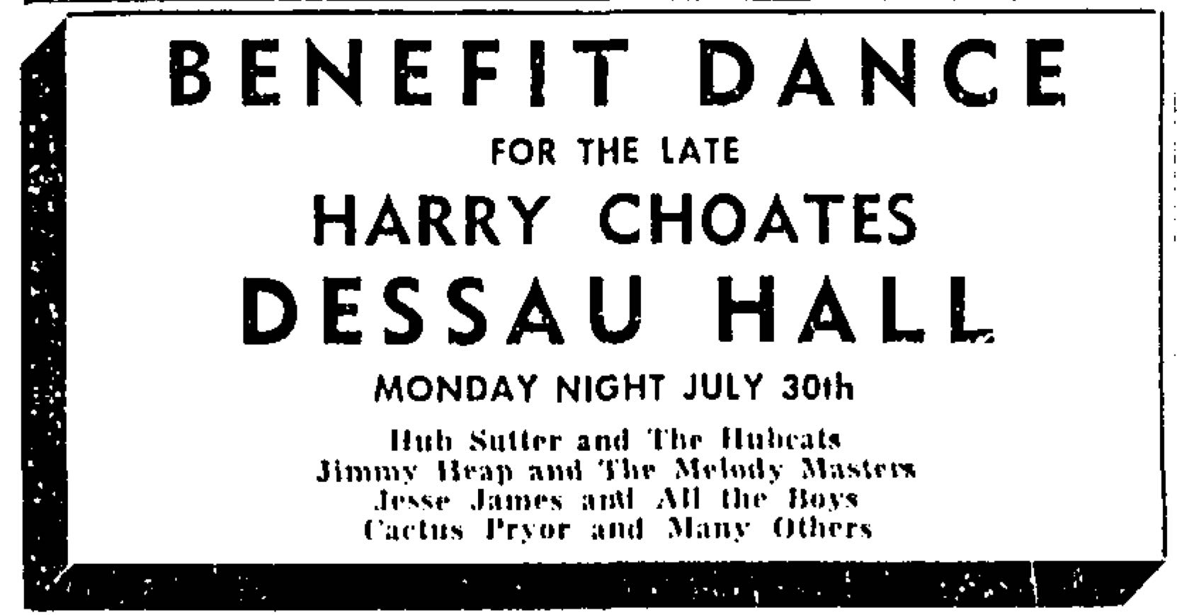 Choates began playing Austin in 1947 and his “Original Jole Blon Band” was a staple at the Barn, The Windmill, and Dessau Hall for the next year. After a two year absence, he re-located to Austin in 1950, where he became the star fiddler in Jesse James’s band. Choates was a magnificent and inspiring performer, but unruly and unreliable. By the time he returned to Austin, he had been overwhelmed by substance abuse for years and, within a short time, had split with his wife. On July 7, 1951, he died in a Travis County jail cell after being arrested for outstanding child support payments. Rumors of a police beating have circulated for decades, but, according to his bandmate Jimmy Grabowske, he was in deep and dangerous alcohol withdrawal the day he died, making it quite possible that he died from complications from the DTs (Delirium Tremens). Choates’s last session in June 1951 contained the song “Austin Special,” the singer’s own depiction or tribute to his recently adopted city.8