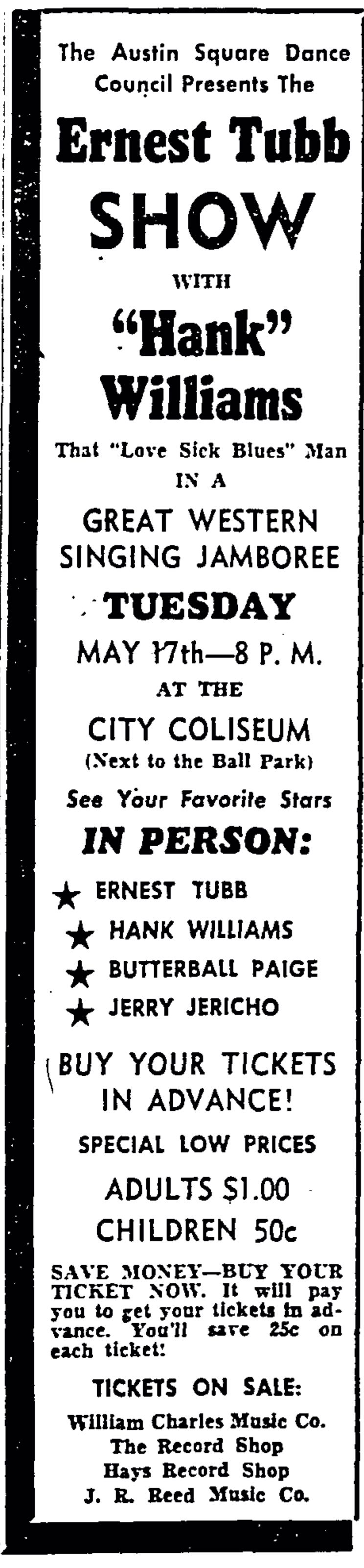 - “Western Music Jamboree Slated at Skyline Club” Austin American (August 30, 1953). ⏎